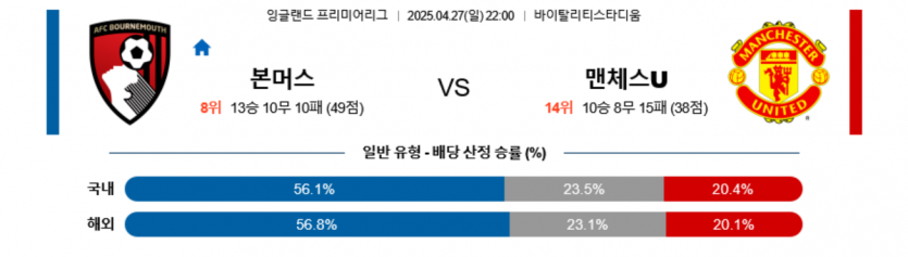 【잉글랜드 프리미어리그】04월27일 본머스 vs 맨체스터유나이티드 EPL 생중계,스포츠분석,스포츠중계