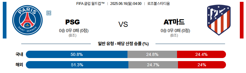 【FIFA 클럽 월드컵】06월16일 파리 생제르맹 vs 아틀레티코 마드리드 FIFA 클럽 월드컵 생중계,스포츠분석,스포츠중계